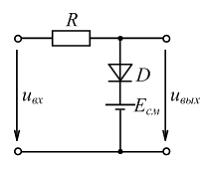 Приведенной передаточной характеристике диодного ключа соответствует схема …