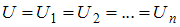 одинаковых конденсаторов их общее напряжение U определяется по формуле …•