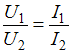 Соотношение между первичными и вторичными напряжениями и токами в трансформаторе соответствуют формуле …• • • •
