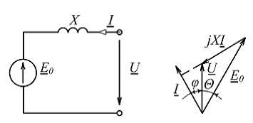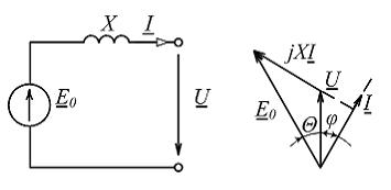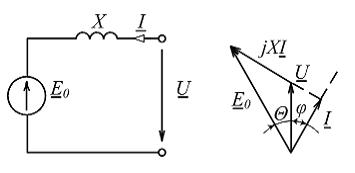 Неявнополюсному синхронному генератору соответствуют упрощенные (без учета активного падения напряжения в обмотке якоря) схема замещения и векторная диаграмма …• • • •