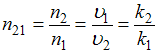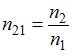 Относительный показатель преломления двух сред определяется отношением абсолютного показателя преломления среды 2 к абсолютному показателю преломления среды 1: