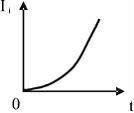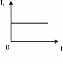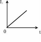 По параллельным металлическим проводникам, расположенным в однородном магнитном поле, с постоянной скоростью перемещается проводящая перемычка (см. рис.). Если сопротивлением перемычки и направляющих можно пренебречь, то зависимость индукционного тока от времени можно представить графиком …