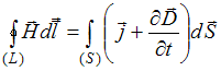 Одно из уравнений Максвелла представляет собой обобщение закона полного тока для поля в веществе и математически может быть выражено уравнениями … • • • •