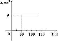 Первоначально тело покоилось. Коэффициент трения равен 0,5. График зависимости ускорения от силы натяжения нити имеет вид …