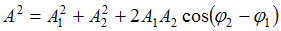 При сложении двух гармонических колебаний одного направления с одинаковыми частотами амплитуда результирующего колебания определяется по формуле
