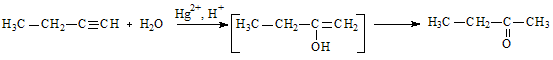 Присоединение молекулы воды протекает по правилу Марковникова (водород присоединяется к более гидрированному атому углерода при кратной связи), альдегид образуется только при гидратации ацетилена.