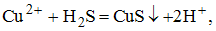 при действии водного раствора сероводорода на раствор, содержащий ионы меди (II), происходит образование осадка черного цвета.