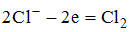 При электролизе водного раствора хлорида калия на инертном аноде протекает процесс, уравнение которого имеет вид …• • • •