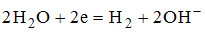 При электролизе водного раствора бромида калия на инертном катоде протекает процесс, уравнение которого имеет вид …• • • •