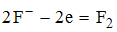 При электролизе водного раствора фторида натрия на инертном аноде протекает процесс, уравнение которого имеет вид …• • • •