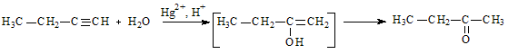 Реакцией Кучерова называется процесс присоединения воды к алкинам в присутствии солей ртути (II) в кислой среде, например