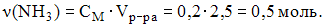 Количество вещества аммиака