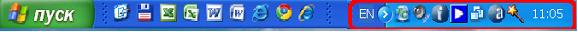 Область уведомлений, находящаяся в крайней правой части Панели задач, содержит индикатор системных часов и группу значков длительно запущенных, но при этом непостоянно используемых задач.