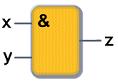 соответствует операции, выполняемой логической схемой «И» (читается как «X и Y»). Условное графическое обозначение логической схемы, выполняющей операцию «И», представлено на рисунке: