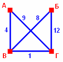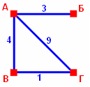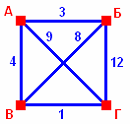 В таблице приведены расстояния между населенными пунктами:
