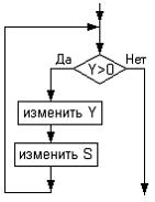 Имеется словесное описание алгоритма: «Пока Y больше нуля, то изменить Y и изменить S.» Этому описанию соответствует блок-схема …• • • •