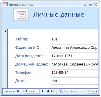 3. Форма в режиме конструктора