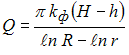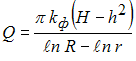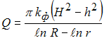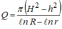 Для расчета дебита совершенных скважин в безнапорных водах по заданному понижению применяется формула Дюпюи …• • • •