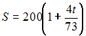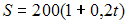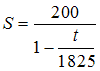 Если временная база по начислению процентов равна 365 дням, то размер долга S (тыс. руб.) фирмы банку через t дней можно определить как …