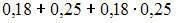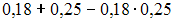 Статья не может быть принята в печать, если содержит опечатки, в ней присутствуют жаргонизмы, а также если наряду с опечатками она содержит жаргонизмы. 100 статей проверили по очереди двое редакторов. Первый определил, что среди 100 проверенных статей 18 содержат опечатки, а второй – что среди тех же 100 статей в 25 присутствуют жаргонизмы. Наугад выбрали 1 статью. Вероятность того, что она не будет принята в печать, вычисляется по формуле …