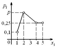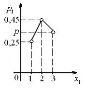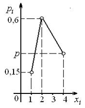 Многоугольником распределения дискретной случайной величины , для которого вероятность равна 0,35, является …• • • •