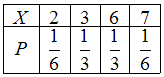 Из четырех монет достоинством 1 рубль, 1 рубль, 2 рубля и 5 рублей случайным образом извлекают 2 монеты (не учитывая последовательность извлечения). Закон распределения дискретной случайной величины X – набранная сумма (в рублях), имеет вид …