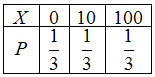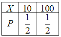 Игрок бросает игральную кость и получает 10 евро, если выпадает 5 очков, 100 евро, если выпадет 1 очко. В остальных случаях игрок не получает ничего. Закон распределения случайной величины