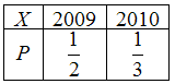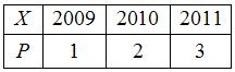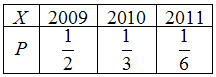 На стеллаже размещены журналы, половина из которых имеет год выпуска 2009, третья часть – 2010 года выпуска, а остальные были выпущены в 2011 году. Закон распределения случайной величины X – год выпуска журнала, выбранного случайным образом, – имеет вид …