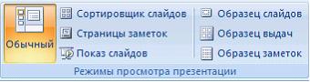 Вкладке «Вид» приложения Microsoft PowerPoint 2007 принадлежит группа команд …