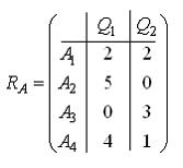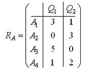 Матрица выигрышей в игре с природой имеет вид: Тогда соответствующая ей матрица рисков будет иметь вид …• • • •
