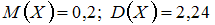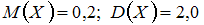 Дискретная случайная величина X задана законом распределения вероятностей: Тогда ее математическое ожидание и дисперсия равны …• • • •