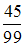 Форма записи периодической бесконечной десятичной дроби 0,(45) в виде рациональной дроби имеет вид …• • • •
