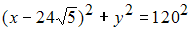 Если ввести систему координат так, чтобы начало координат совпадало с расположением установки A, а ось ОХ была направлена в сторону установки B (см. рисунок), то уравнение линии, на которой расположены все такие точки, может быть записано в виде …