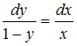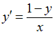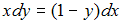Будучи приведённым к уравнению с разделёнными переменными, дифференциальное уравнение примет вид …• • • •