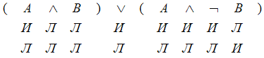 была построена сокращённая таблица истинности, в которой значение "истина" обозначено буквой И, а значение "ложь" – буквой Л.