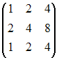 Ранг матрицы равен единице. Тогда матрица может иметь вид …