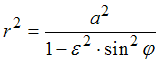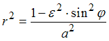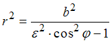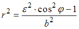 . Тогда ее полярное уравнение при условии, что направление полярной оси совпадает с положительным направлением оси абсцисс, а полюс находится в центре гиперболы, имеет вид …•