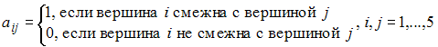 Матрицей смежности орграфа с 5 вершинами называется квадратная матрица порядка 5, отражающая смежность вершин, с элементами