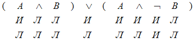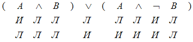 была построена сокращённая таблица истинности, в которой значение "истина" обозначено буквой И, а значение "ложь" – буквой Л.