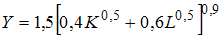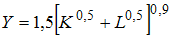 Производственная функция с постоянной эластичностью замены (CES) может иметь вид …