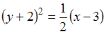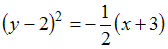 Известно, что уравнение параболы имеет вид Тогда уравнением параболы, изображенной на чертеже, является …• • • •