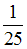 В первой шкатулке находится 20 монет одинакового достоинства. Известно, что 2 из них являются фальшивыми. Во второй шкатулке 25 монет, из которых 5 монет фальшивые. Из каждой шкатулки наугад берут по одной монете. Вероятность того, что обе монеты окажутся фальшивыми, равна …