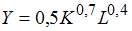 Убывающей отдачей от масштаба характеризуется производственная функция …