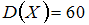 Проводится n независимых испытаний, в каждом из которых вероятность появления события A постоянна и равна 0,6. Тогда математическое ожидание M(X) и дисперсия D(X) дискретной случайной величины X – числа появлений события A в