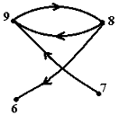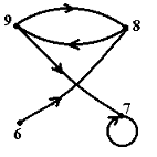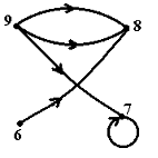 Реализацией графа с множеством вершин V={9,8,7,6} и списком дуг Е={(9;8),(6;8),(7;7),(8;9),(9;7)} является …• • • •