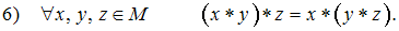 с указанными операциями, была некоммутативным кольцом с единицей, к предложенному списку аксиом нужно добавить …