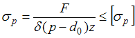 ) по сечению, ослабленному отверстиями под заклепки (их число z) при действии силы F, не произойдет, если …