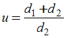 Передаточное число u механической передачи при известных диаметрах зубчатых колес и может быть рассчитано по формуле … • • • •