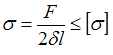 Условие прочности стыкового сварного соединения, с указанными на рисунке размерами и нагрузкой, при известных допускаемых напряжениях шва