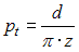 Окружной шаг pt зубчатого колеса с числом зубьев z и диаметром делительной окружности d связан зависимостью … • • • •